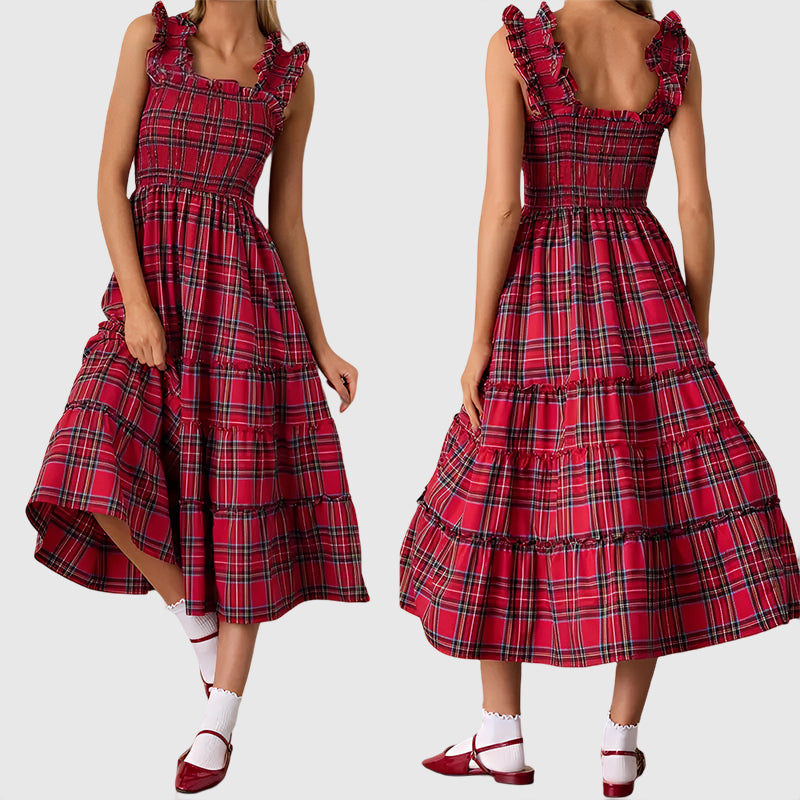 🎄 Christmas Women Sleeveless Dress 🎄Elevate your style with this sleeveless, plaid print dress. Perfect for summer, beach clubs, and streetwear, it features a square neckline, smocked chest, and high waist. The ruffled hem adds a charming touch. Ideal for casual, club, cocktail parties, holidays, and more. Show off your curves effortlessly. Features & Design·Vintage plaid print·Sleeveless design·Square neckline·Smocked chest·High waist·Ruffled hem·A-line and mid-length designSize & Fit·S: Length 101 cm, Bust 76 cm, Waist 64 cm·M: Length 102 cm, Bust 80 cm, Waist 68 cm·L: Length 103 cm, Bust 86 cm, Waist 74 cm·XL: Length 104 cm, Bust 92 cm, Waist 80 cmMaterial & Care·Material: 35% Cotton, 65% Polyester·Condition: 100% Brand New·Style: Fashion·Gender: Women·Season: SummerOccasion & Package·Occasion: Daily, casual, club, cocktail party, holiday, beach, vacation, travel, shopping, birthday, street, night out, work, dating·Package: 1 x Women's DressNote·1-2 cm deviation possible due to size, location, and fabric stretch.·Size chart is for reference; slight differences may occur.·Color may vary due to different PC displays.